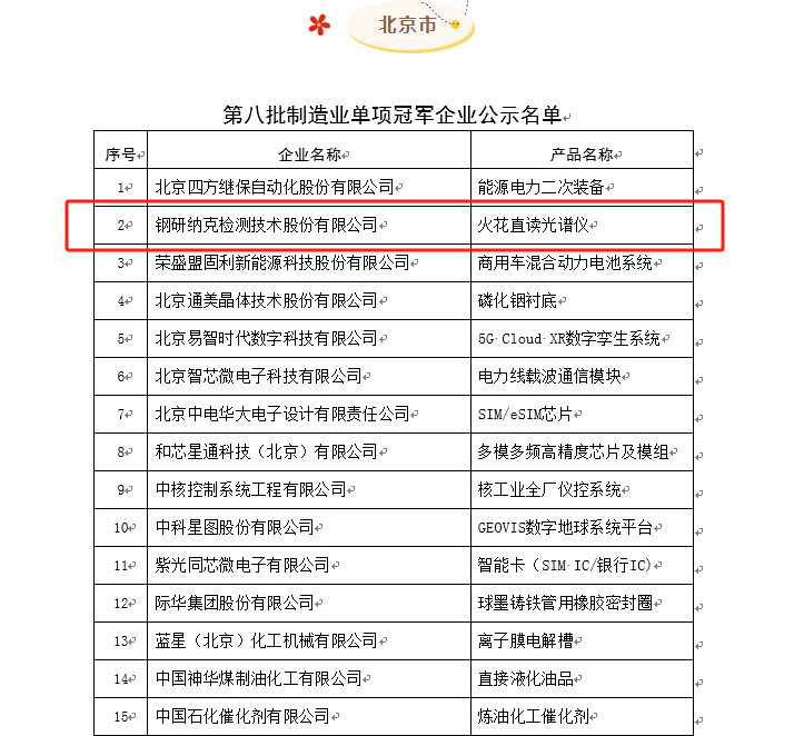 2024年3月4日,各省市工信厅(局)陆续披露第八批制造业单项冠军企业和通过复核的第二批、第五批制造业单项冠军企业名单,令人振奋的消息传来,钢研纳克分析仪器—火花直读光谱仪凭借卓越的产品质量和优秀的市场表现,成功荣获第八批制造业单项冠军产品称号,成为行业内佼佼者。